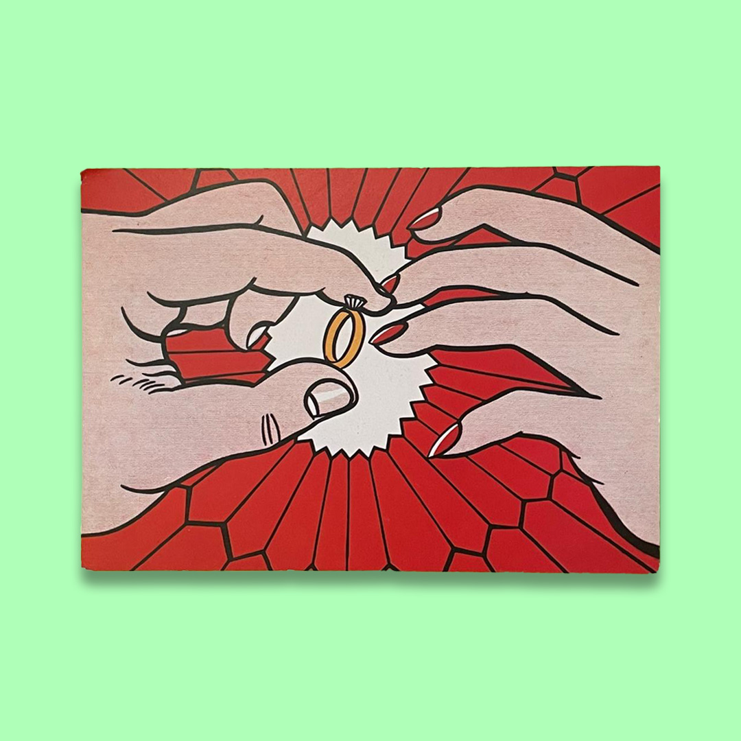 Cartolina che omaggia lo stile fumettistico e la Pop Art. Un illustrazione chiara e diretta di quello che lo stile artistico pop per eccellenza.\