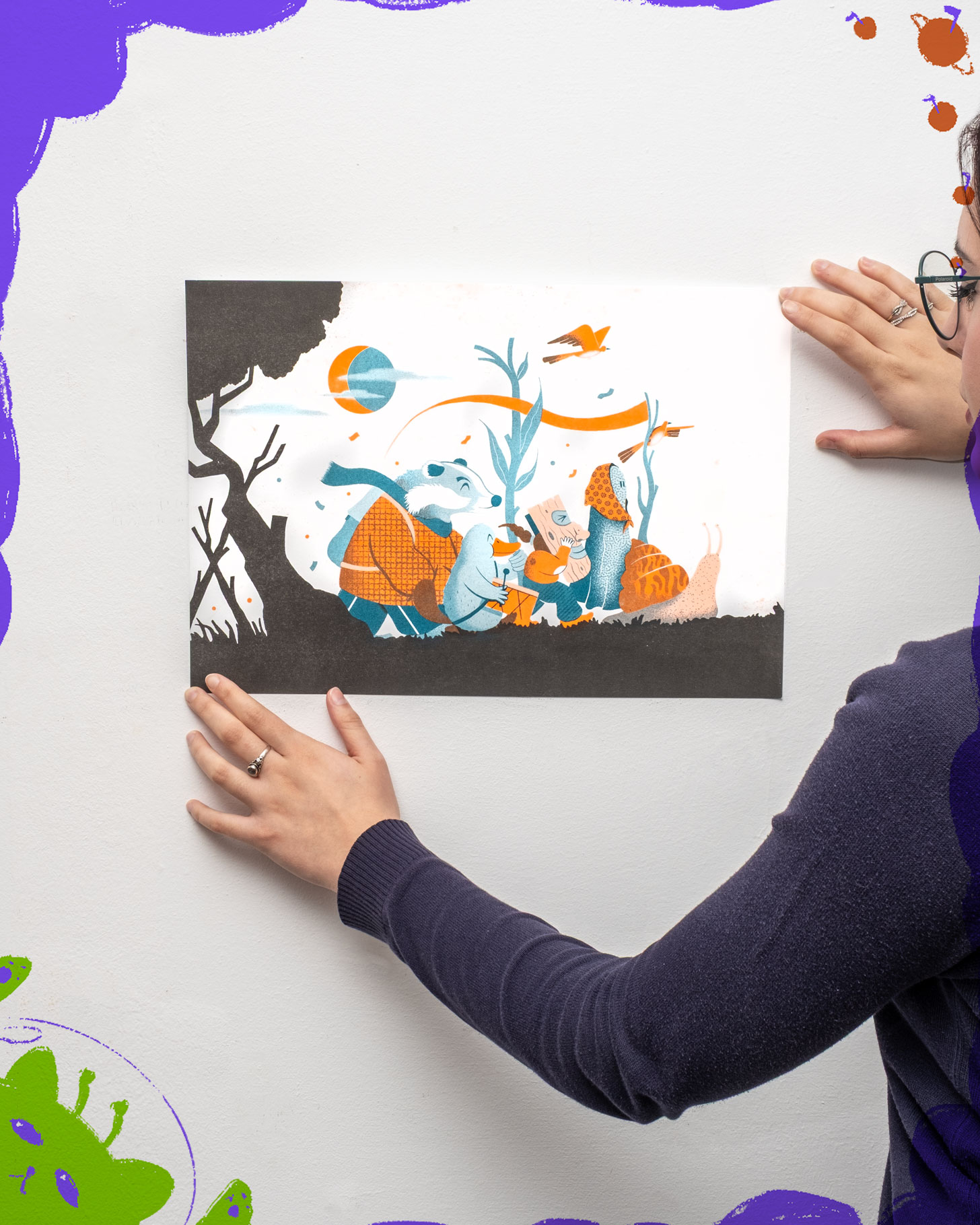 Risograph “La Sfilata” formato A3, tre inchiostri di Pablo Caracola
