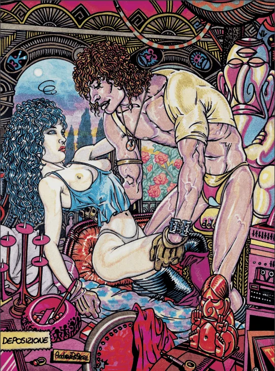 L’erotismo ha attraversato tutta l’opera di Andrea Pazienza. Una vena inesauribile che si è espressa nei lavori pittorici, nelle vignette, nelle storie e nelle illustrazioni della maturità artistica, fino a perdere ogni freno inibitore negli ultimi anni. Corpi avvinghiati in furiosi amplessi, donne fatali, maliziose e ironiche o distanti e perplesse, uomini a volte muscolosi, a volte appassionati, molte volte ridicoli. Il volume Super Pazeroticus raccoglie una parte consistente di questa produzione: dai disegni per il libro Pazeroticus, pubblicato nel 1987 dalla Glamour International Production di Antonio Vianovi, alle illustrazioni per Frigidaire, Frizzer, Comic Art e una quantità di riviste, fino alle emozionanti opere a quattro mani con Tanino Liberatore e Magnus. Come scrive nella prefazione Veronica Raimo, Pazienza ha la capacità di esercitare una seduzione fisica e anche le sue immagini più “scorrette” sono gioiosamente ambivalenti. Sfogliare questo volume significa intraprendere un travolgente viaggio tra tenerezza e pornografia, goliardia e sopraffazione, venerazione estatica e machismo sguaiato, nelle irresistibili fantasie di uno dei più grandi autori del Novecento.