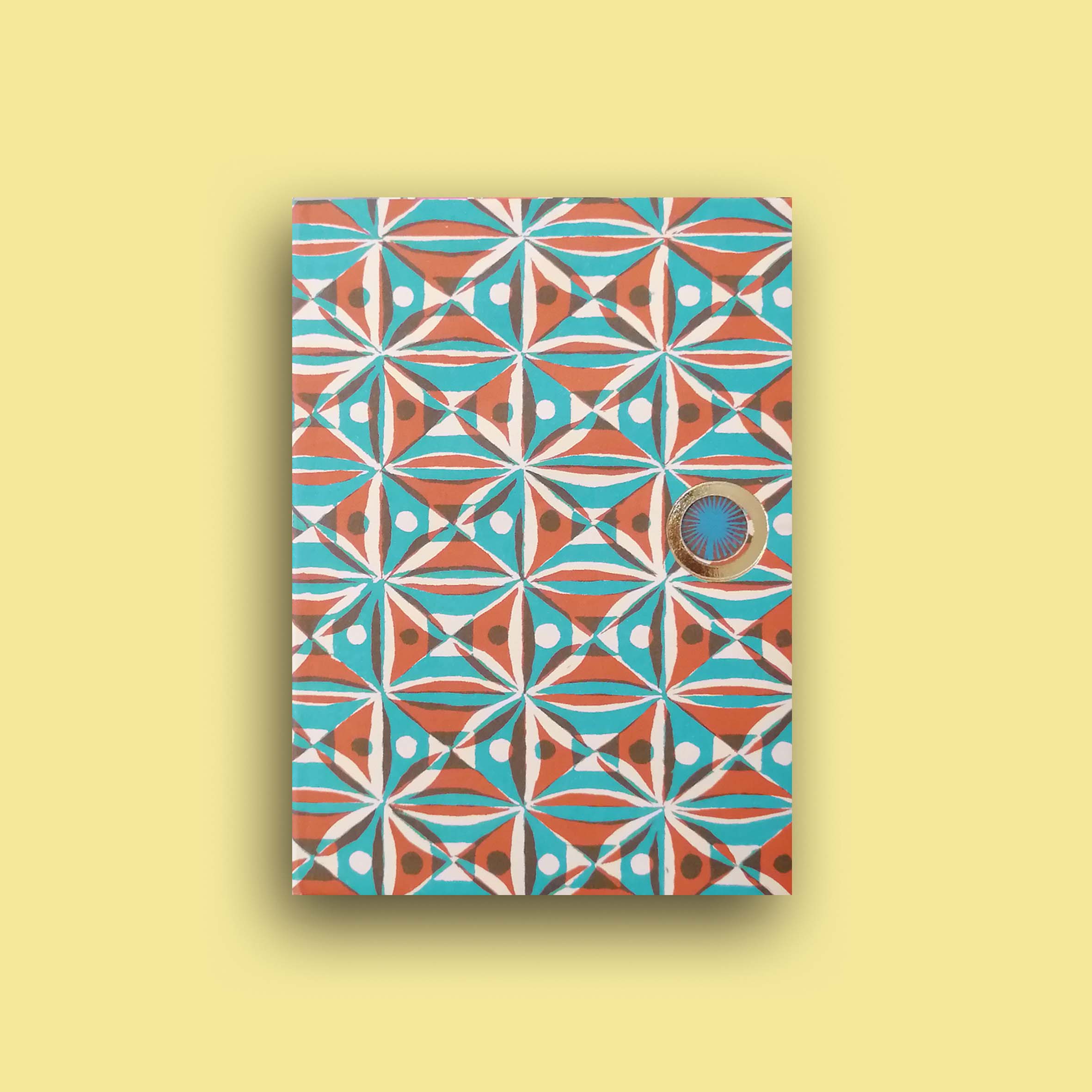 L’occhiello dorato ruba la scena alla grafica geometrica dai colori caldi e freschi: un vero e proprio oblò, pronto a farti sbirciare mondi immaginari o nuove ispirazioni.